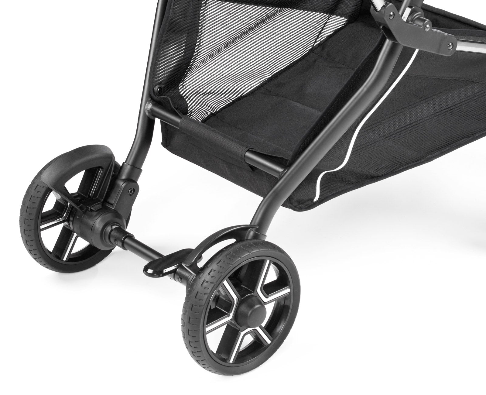 - Top quality wheels with high-visibility finishes - The soft-ride wheels, rear shock absorbers with visible springs and ball bearings ensure agile steering on all terrain. You can adjust the front wheels, from locked to swivelling and vice versa. Wheels with high-visibility finishes are ideal even in the evening walks. User-friendly brake.