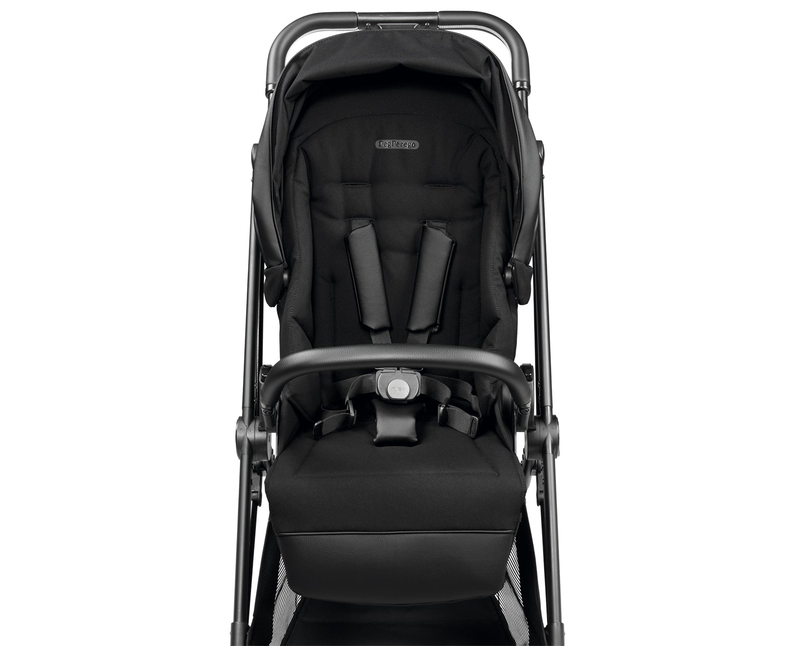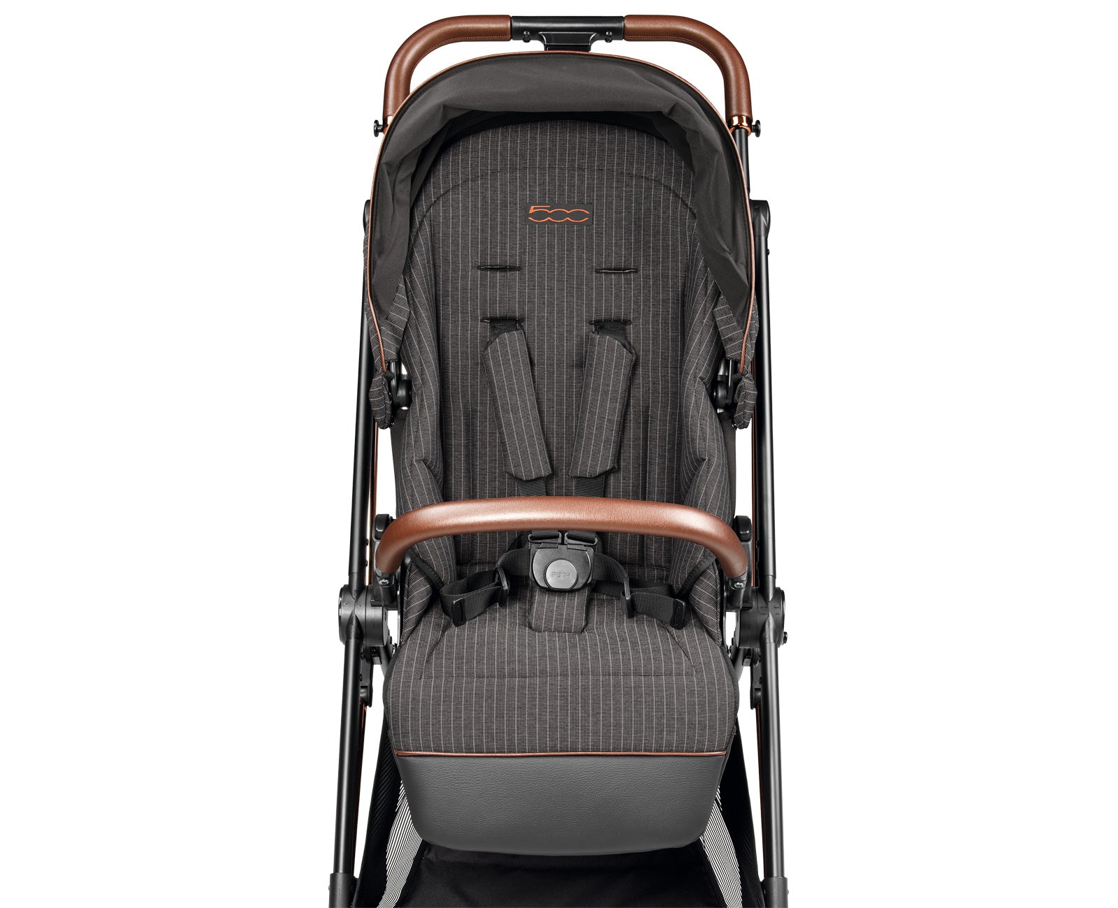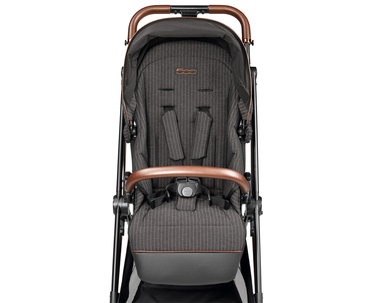 - Large, comfortable seat - Comfort and functionality are guaranteed by a roomy seat, a 5-point harness and an eco-leather front bar that opens and closes with ease.