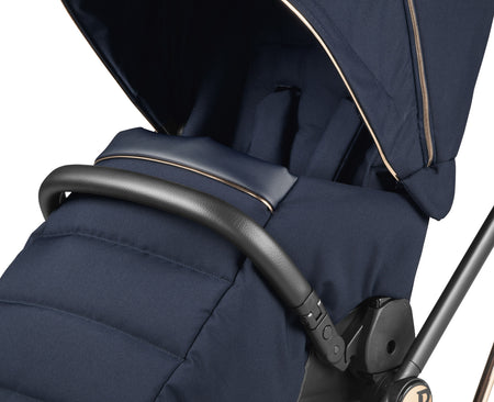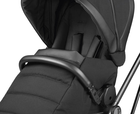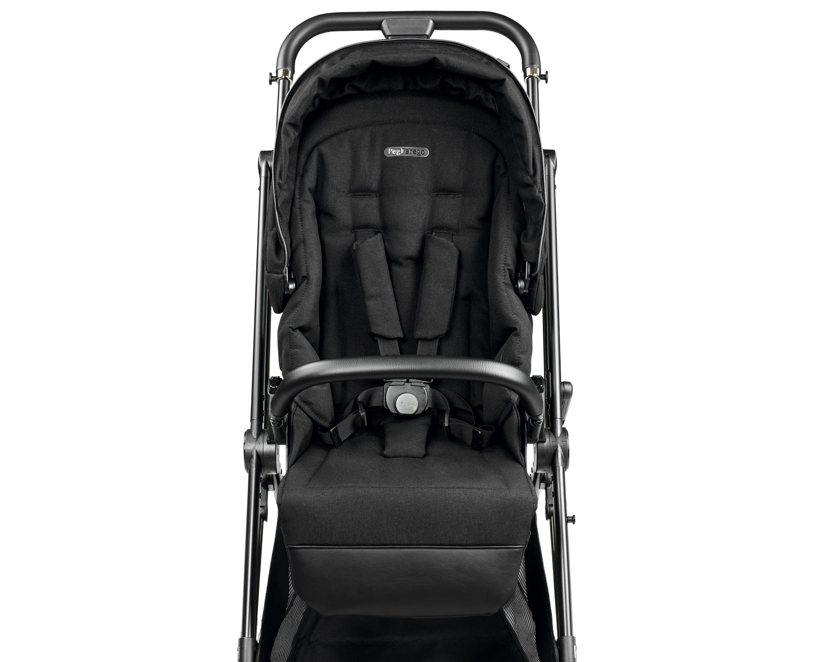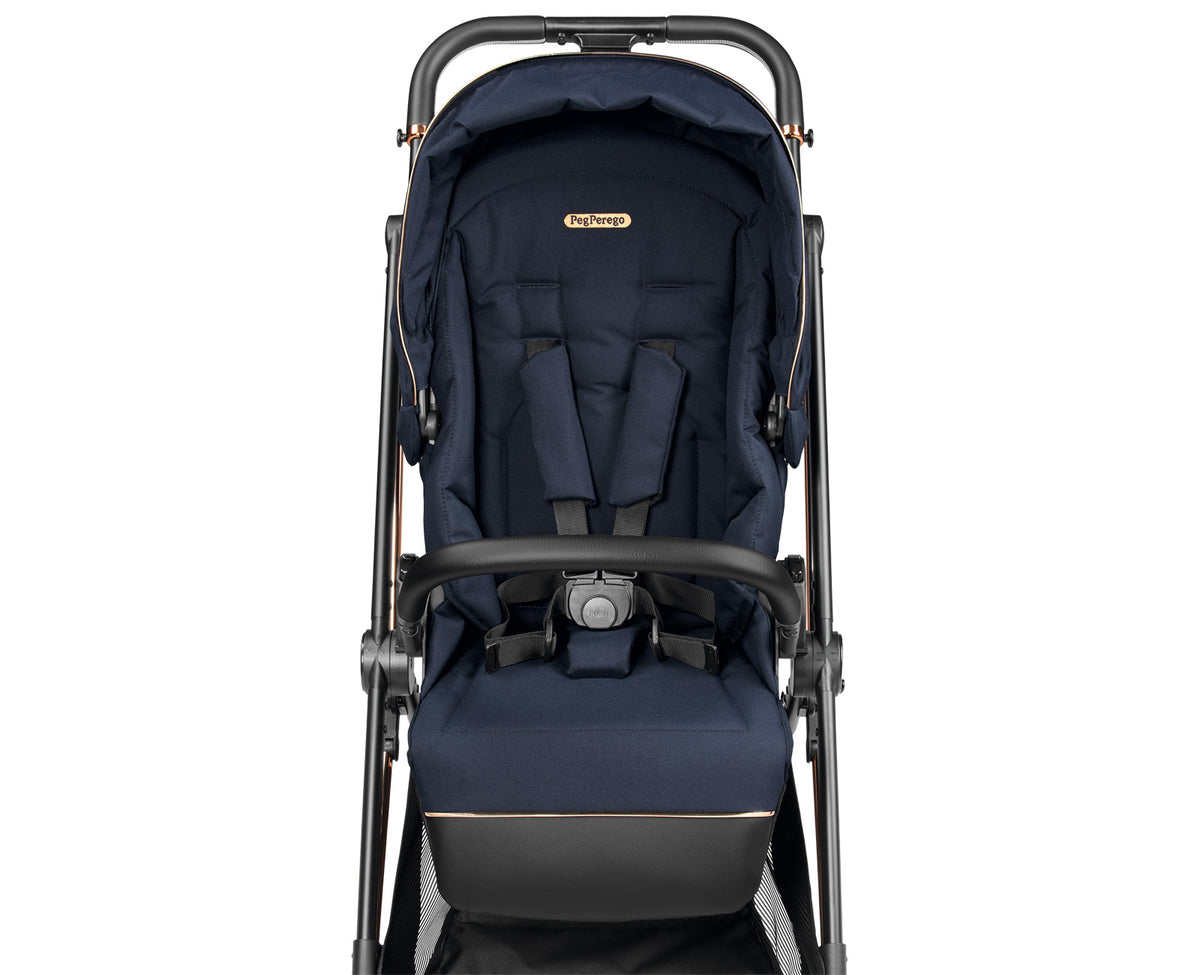 - Large, comfortable seat - Comfort and functionality are guaranteed by a roomy seat, a 5-point harness and an eco-leather front bar that opens and closes with ease.