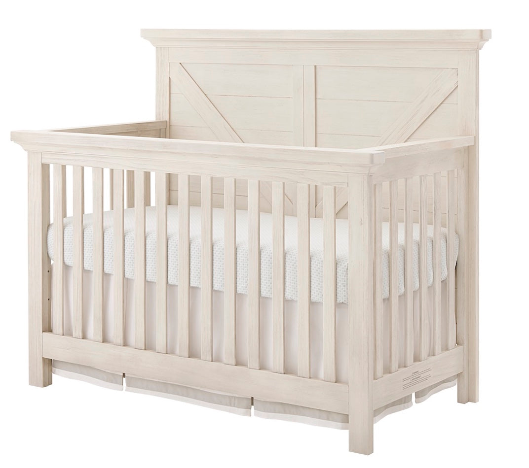 The Westfield Convertible Crib is perfect for a modern day farmhouse enthusiast. Barn door styling and simple metal hardware keep this set rustic yet warm. Two timeless finishes were created to last through your baby's precious childhood years into adulthood