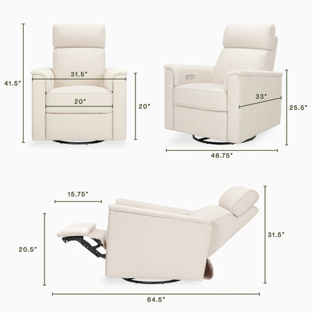 A deluxe, electronic version of our best-selling Willa Recliner. With thoughtful details and clean lines, the Willa Plus Power Glider Recliner w/ Power Headrest combines modern design with traditional comfort. Its pillow lined arms, smooth glide, and power recline + power headrest create the most comfortable and luxurious resting spot for you and your baby.