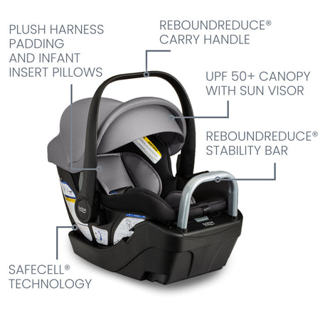 - REBOUNDREDUCE(R) STABILITY BAR: Alpine infant car seat base helps minimize movement in a crash; carry handle provides stability when used in the upright position