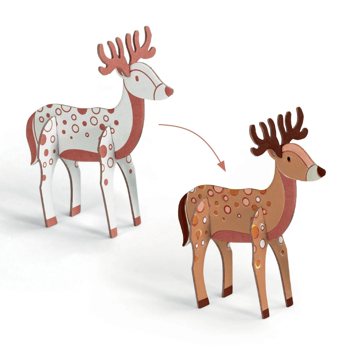 A creative kit with a multitude of cardboard pieces to colour and assemble to make animals and decorations on the theme of the forest. All the creative pleasure of colouring combined with the activity of building objects in volume. For hours of creation and play!