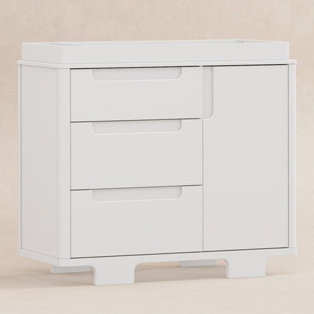 Designed to complement the Yuzu 8-in-1 All-Stages Crib, the Yuzu 3-Drawer Changer Dresser marries form and function with playful arched feet, gently curved corners, included changing tray, and plenty of storage with 3 drawers and 1 spacious cabinet. Whether you're going for a classic, modern, or eclectic look, this versatile dresser is a perfect statement piece in the nursery.